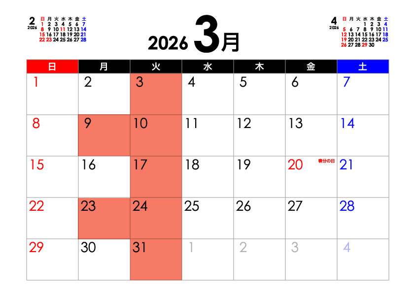 2 212026 美容室アポロニア 3月のお休み。 お知らせ 美容室アポロニア、2026年3月のお休みは、3/3.9.10.17.23.24.31日です。よろしくお願いいたします。 2025年 第76回 NHK紅白歌合戦 松田聖子さんのヘアメイクを担当いたしました。 前の記事 美容に水素を取り入れよう! 次の記事